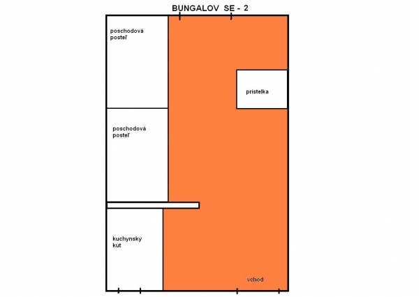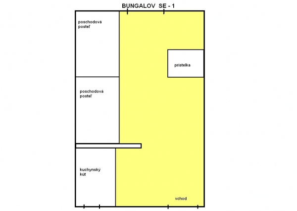 V každom bungalove sa nachádza : 2x poschodová posteľ, 1x rozťahovacie kreslo (prístelka),skriňa, stôl, stoličky, farebný televízor, CD, rádio, ventilátor, kuchynský kút - chladnička s mraziakom, mikrovlnná rúra, rýchlovarná kanvica, dvojplatnička, varič, príbory, taniere, poháre.